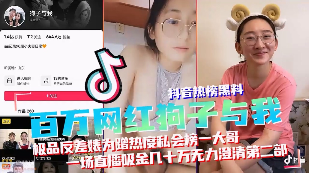抖音黑料,百万网红狗子与我真实曝光第二部!极品反差婊蹭热度出轨榜一大哥,一场直播吸金几十万厚着脸皮澄清!抖音网红【狗子与我】【黑料】【收】